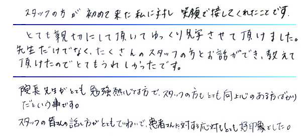 DhA:HPを見て、クリニックの行動指針に感銘を受けたから。