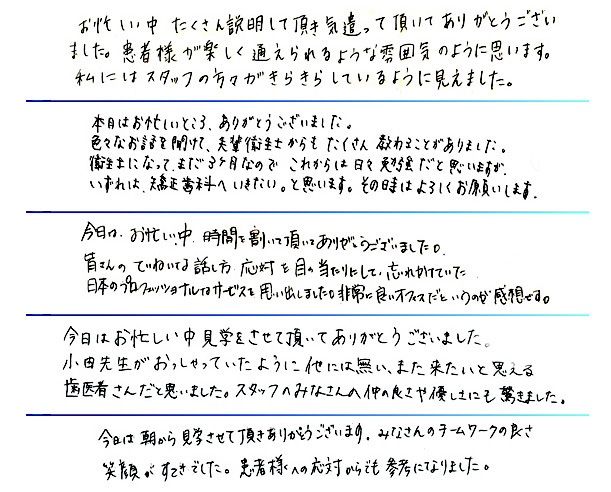 さまざまな衛生士学校の学生さん、現役の衛生士さんにも多数見学に来ていただいております。お気軽にどうぞお越しください。